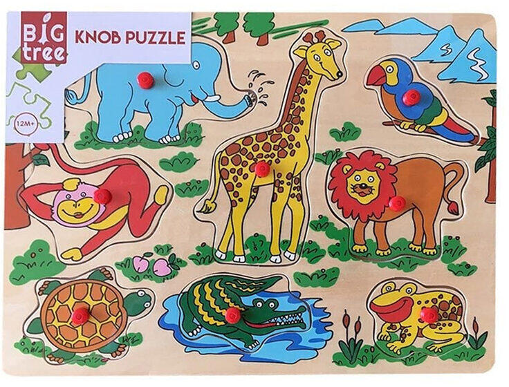 A gombos fa puzzle vadállatokat ábrázol. A színes fajáték kiváló készségfejlesztő eszköz a formák felismeréséhez. A nagy kontrasztú színek és az egyszerű formák izgalmas játékká teszik ezt a fából készült kirakót a kisgyermekek számára, akik a finom...