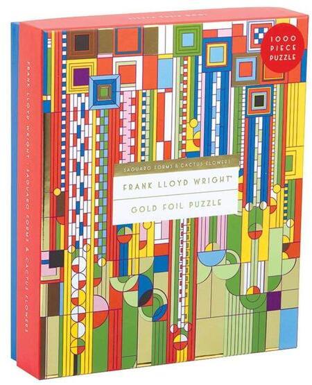 Frank Lloyd Wright színes, absztrakt kaktusz motívumai ragyognak a Galison 1000 db-os Fóliás puzzle - Saguaro Cactus, Frank Lloyd Wright (53527) a képén, melyet csillogó fóliadíszítés tesz igazán különlegessé. Modern és mutatás kirakó a művészet kedvelőinek.