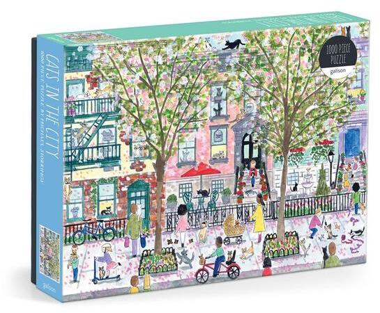 Cicák mindenhol! A macskák városi életét mutatja be a Galison 1000 db-os puzzle - Cats In The City (84842) kirakó Michael Storrings játékos, részletgazdag stílusában.