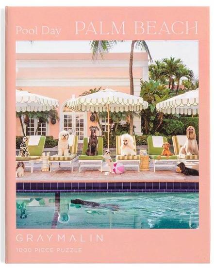 Gray Malin fotóművész színes Palm Beach medenceparti jelenete elevenedik meg a Galison 1000 db-os puzzle - Pool Day Palm Beach (83814) képén. Stílusos, nyári hangulatú kirakó elegáns könyv alakú dobozban.