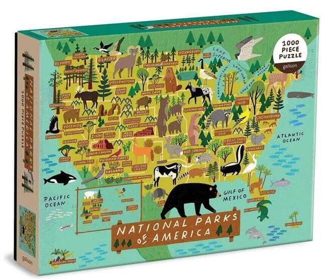 Az amerikai nemzeti parkok lenyűgöző tájai és ikonikus állatvilága kel életre a Galison 1000 db-os puzzle - National Parks of America (69542) kirakó minden darabjában.