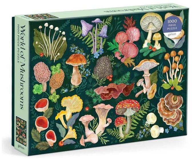A gombák mesés világa elevenedik meg a Galison 1000 db-os puzzle - World of Mushrooms (82268) kirakó képén, hihetetlen formákkal és színekkel – felfedezőknek és természetkedvelőknek.