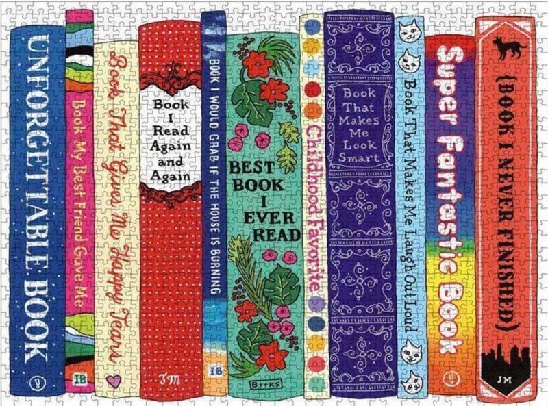 Színes könyvespolc, ahol az ideális olvasmányok sorakoznak. A Galison 48806 - Ideal Bookshelf - 1000 db-os puzzle a könyvimádók álma.