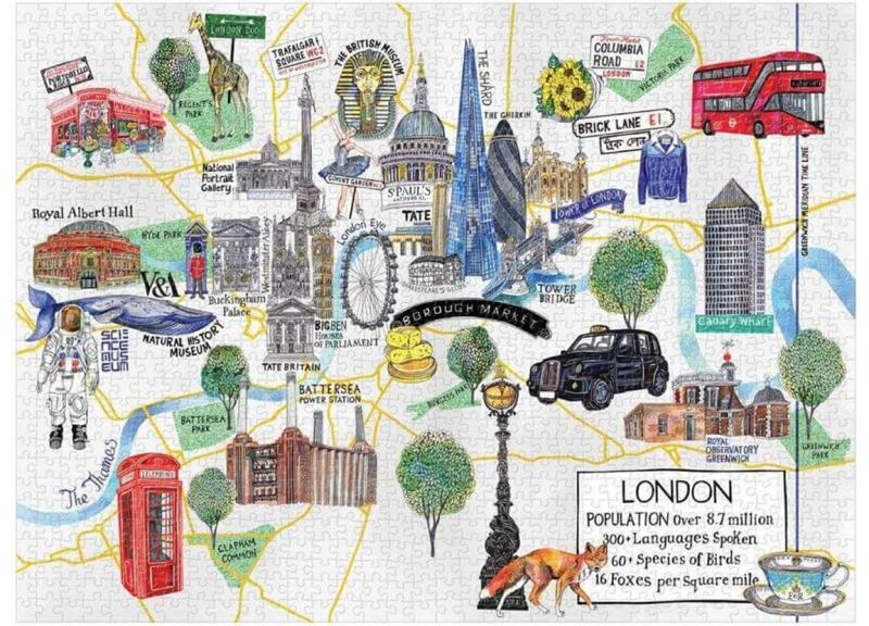 Látványos térkép mutatja be London utcáit és nevezetességeit a Galison 56931 - London Map - 1000 db-os puzzle képén. Izgalmas kirakó a város szerelmeseinek