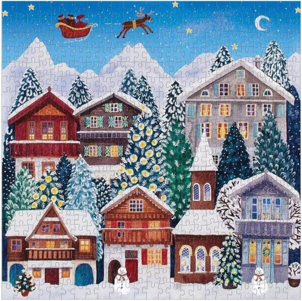 Egy bájos karácsonyi falu ünnepi részletei tárulnak fel ebben a meghitt hangulatú Galison 500 db-os puzzle - Yuletide Village (66732) kirakóban.