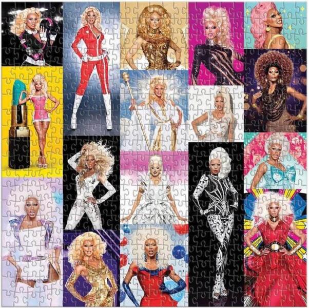 Vibráló színek és ikonikus stílusokkal ünneplik a sokszínűséget és önkifejezést a Galison 500 db-os puzzle - RuPaul's Drag Race (70746) drag queen kirakó képén.