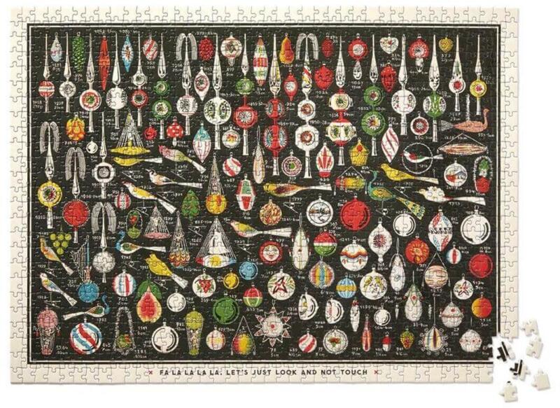 Vidám ünnepi hangulatot árasztó, karácsonyi díszek sokasága jelenik meg a Galison 71149 - Fa La La La La - 1000 db-os puzzle képén. Igazi szezonális kirakó, amely jókedvet hoz a téli estékre.