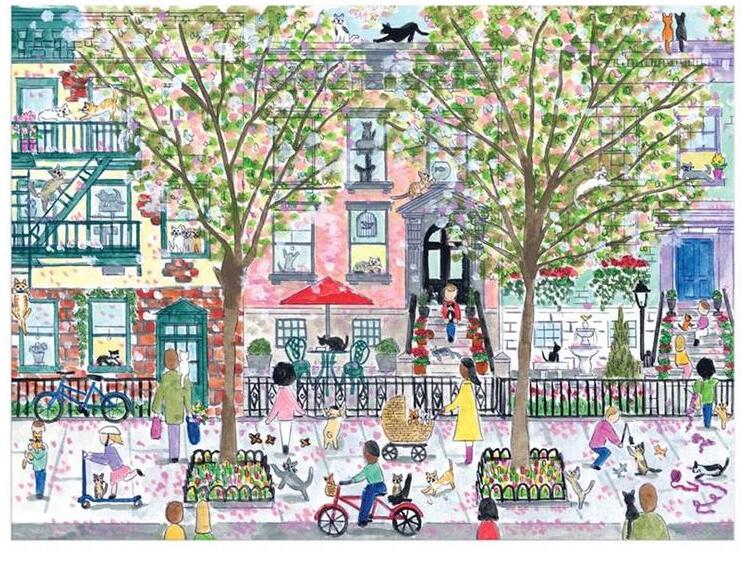 Cicák mindenhol! A macskák városi életét mutatja be a Galison 1000 db-os puzzle - Cats In The City (84842) kirakó Michael Storrings játékos, részletgazdag stílusában.