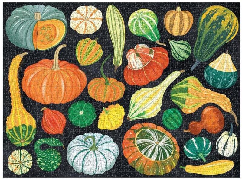 Őszi tökök sokszínű világa tárul eléd a Galison 85597 - World of Pumpkins - 1000 db-os puzzle barátságos, meleg színekben pompázó képén.