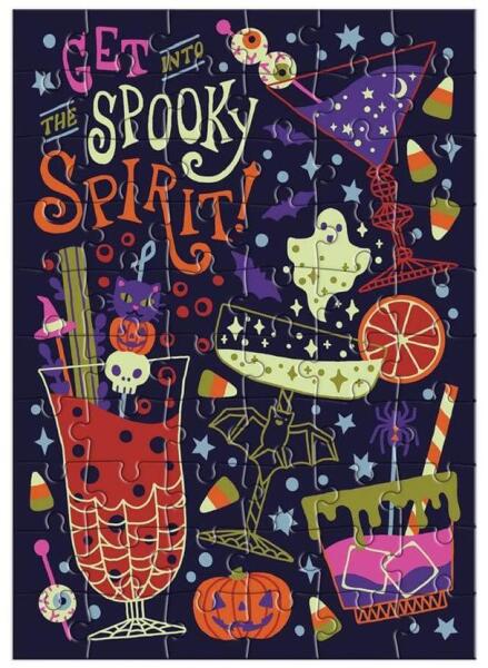 Vidám halloween-i illusztráció kísértetekkel és szellemes koktélokkal. Küldj halloween-i üdvözletet a Galison 86617 - Get into the Spooky Spirit - 60 db-os Képeslap puzzle -el!