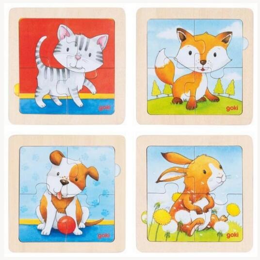 Goki 4 db-os Fa Puzzle Állatok (1 db), többféle (GK57327)