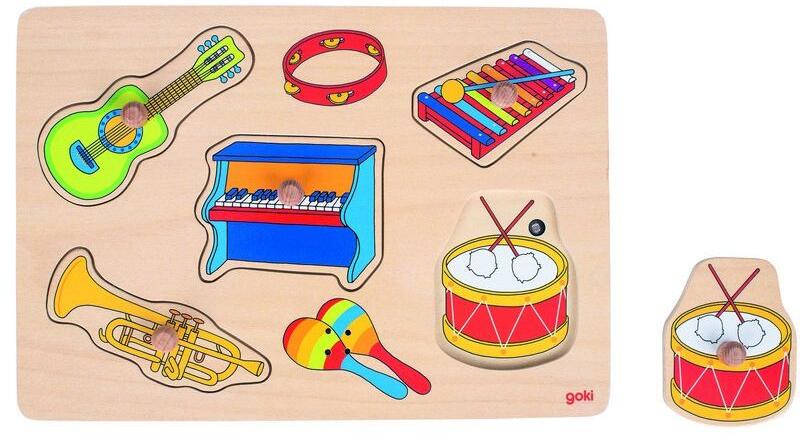 Goki Hangot adó fogantyús fa kirakó, hangszerek, hangszer hangokkal