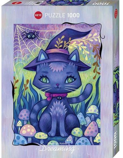 Ez a cuki boszorkánycica igazi halloween-i hangulatot varázsol az asztalodra a Heye 1000 db-os puzzle - Dreaming - Witch Cat (30030) kirakóval !
