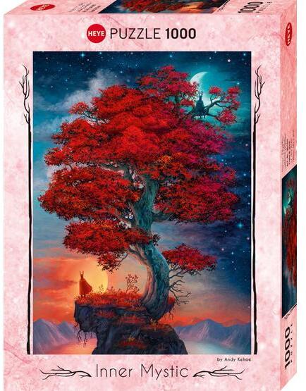 A nappal és éjszaka kontrasztja kelti életre a misztikus, spirituális hangulatú jelenetet. A Heye 1000 db-os puzzle - Inner Mystic - Light & Dark, Kehoe (30105) mély érzelmi töltettel és sejtelmes látvánnyal vonja magára a figyelmet.