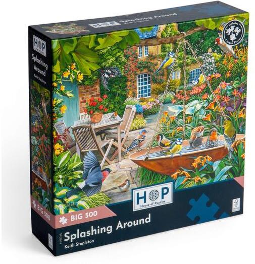 A House of Puzzles egy elismert brit puzzle márka, amely egyedi, részletgazdag illusztrációiról és kiváló minőségű, egyedi formájú kirakódarabjairól ismert. Termékeik Skóciában készülnek, és a hagyományos kirakózás élményét ötvözik prémium kidolgozással és gyűjtők által kedvelt témákkal. A House of Puzzles 500 db-os XXL puzzle - Splashing Around (0765) kirakó képén játékos állatok pancsolnak vidáman egy napsütéses vízparton.