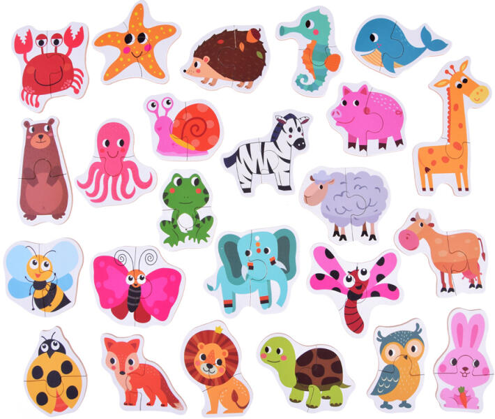 Egy fantasztikus, színes, állatokkal ellátott rejtvénykészlet 3 éves kortól készült gyermekek számára. Egy nagyméretű, két részből álló puzzle segítségével elrendezheti az adott állat képét. A játék vonzóbbá tétele érdekében a puzzle alján angol nyelvű felirat található, így a gyerek játék közben azonnal megtanulja az állat nevét idegen nyelven. A rejtvény összeállítása fejleszti a vizuális memóriát és a térbeli képzelőerőt, türelemre és logikus gondolkodásra tanít, valamint lehetővé teszi a finommotorika gyakorlását. A rejtvények a gyerekek biztonsága érdekében a legnagyobb odafigyeléssel készültek. Az elemek lekerekített sarkúak és vastag kartonból készültek, így kis kezek is könnyen megfoghatják. A puzzle grafikája és színei nagyon tetszetősek, így könnyen felkeltik minden gyermek figyelmét.