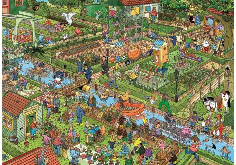 Egy hatalmas zöldségeskert, ahol mindenki másképp érti a kertészkedést. Megannyi apró részlet, humoros jelenet kel életre a Jumbo 00600 - Jan van Haasteren - The Vegetable Garden - 1000 db-os puzzle képén, fedezd fel mindet!