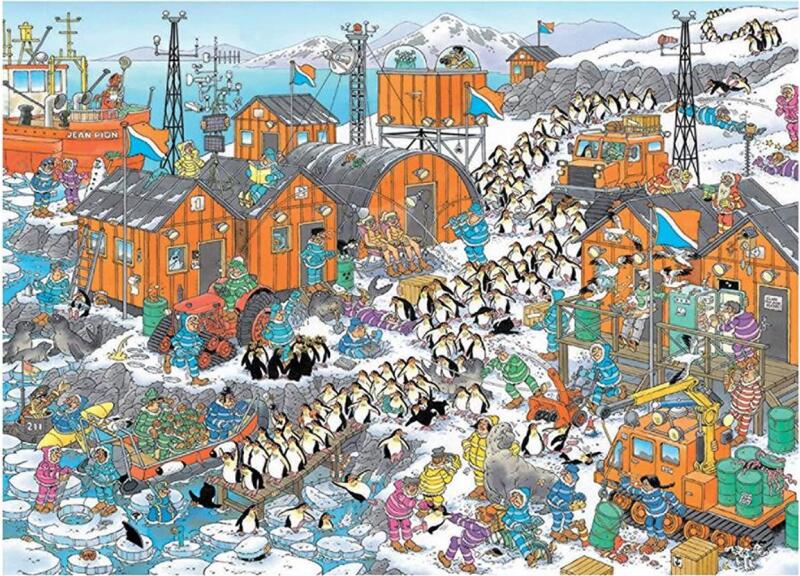 Antarktiszi kutatók és pingvinek a vidám káosz főszereplői. A Jumbo 00607 - South Pole Expedition, Jan van Haasteren - 1000 db-os puzzle jelenete tele van abszurd humorral és jeges kalandokkal.