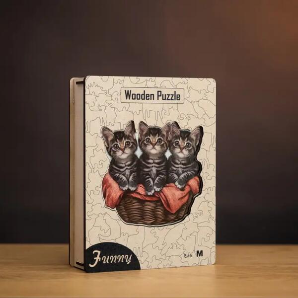 Kosárnyi cicakölyök fa puzzle L Prémium fa doboz