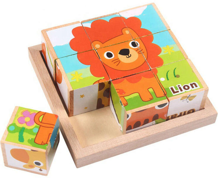 Fa Kockák Kirakó Játék Állatokkal - Fejlesztő Játék Kisgyermekeknek ??? Ez a vidám fa kockákból álló kirakó játék tökéletes választás a legkisebbek számára! Segít fejleszteni a gyermek vizuális és finommotoros képességeit, miközben remek szórakozást nyújt. A színes, vidám állatfigurák felkeltik a kicsik érdeklődését, és ösztönzik őket a kreatív gondolkodásra. Főbb jellemzők: ? 9 db színes fa kocka: Minden kocka 6 oldalán más-más kép található. ? Vidám állatfigurák: Oroszlán, zsiráf, tigris, elefánt, zebra, nyúl és még sok más! ? Fejlesztő hatás: Javítja a formafelismerést, a színfelismerést és a finommotoros készségeket. ? Kisgyermekeknek ideális: Biztonságos és környezetbarát fából készült. ? Színes és vonzó design: A gyerekek imádni fogják a vidám képeket! A játék előnyei:Kreativitás fejlesztése: A kockák sokféleképpen kirakhatók, így a gyermek szabadon alkothat. Forma- és színfelismerés: A különböző képek segítenek a formák és színek megismerésében. Finommotorika fejlesztése: A kockák mozgatása fejleszti a kézügyességet és a precizitást. Szórakozás és tanulás egyben: A játék szórakoztató és egyben fejlesztő is. Lepd meg gyermeked ezzel a szórakoztató és fejlesztő játékkal! ?