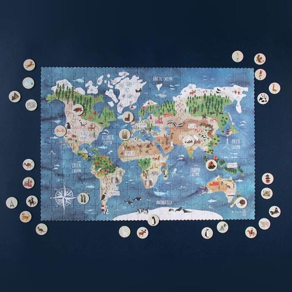 Fedezd fel a világ rejtett csodáit ezzel a különleges világtérkép kirakóval! Először rakd ki a térképet, majd indulhat a keresés: megtalálod az Eiffel-tornyot, a Big Bent vagy a pandát? Ez nem csupán egy puzzle, hanem egy izgalmas megfigyelési játék is, amely szórakoztató módon segít megismerni a földrészeket és országokat. Hol is van Ausztrália?
