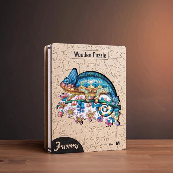 Lopakodó kaméleon fa puzzle L Prémium fa doboz