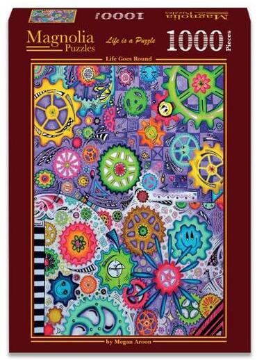 Körkörös motívumok, fogaskerekek mesélik el az idő múlását. A Magnolia 1000 db-os puzzle - Life Goes Round (2116) képe szimbolikus és gondolatébresztő.