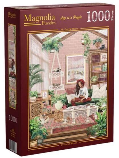 Egy csodaszép szoba tárul elénk, ahol a falakon is kirakók lógnak, és minden a kreativitásról szól. A  Magnolia 1000 db-os puzzle - My Puzzle Room (3429) képe minden puzzle-rajongó szívét megdobogtatja.