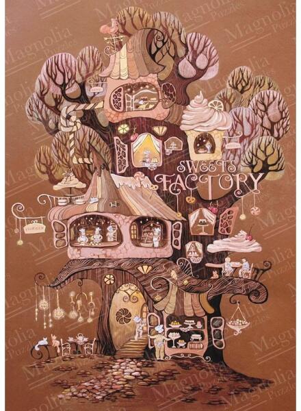 A Magnolia Puzzle az ALB Company márkaneve, amelyet 2020-ban alapítottak Izmirben. Termékei magas minőséggel, kiváló vágási technikával, matt és bársonyos felülettel, valamint exkluzív képekkel tűnnek ki. Világhírű művészek alkotásai teszik egyedivé kirakóikat. A  Magnolia 1000 db-os puzzle - Sweets Factory (3450) kirakó képén Julia Vaihicseva művész képe látható, édességgyár címmel.