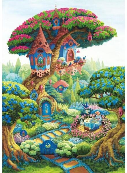 A titkos kertben virágok, madarak és természetesen titkok várnak a felfedezőre. A  Magnolia 3453 - Secret Garden - 1000 db-os puzzle képe romantikus és varázslatos.