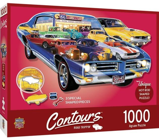 A MasterPieces 1000 db-os puzzle - Hot Rod  című sziluett kirakó egy nosztalgikus múlt étkezdéit és izomautóit mutatja be. A puzzle három különleges alakú darabot is tartalmaz.