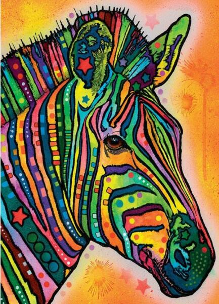 A MasterPieces 1000 db-os puzzle - Dean Russo - Stripes McCalister  című képen egy feltűnő zebra látható színes, modern art stílusban.