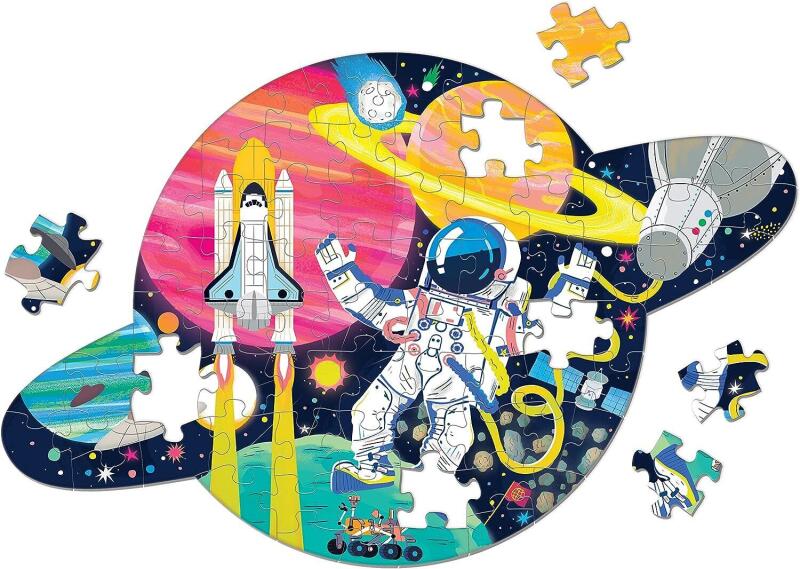 75 darabos különleges puzzle, mely kirakott állapotában egy gördeszkázó Szaturnusz alakú.