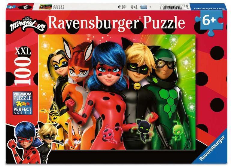 Kedvenc hőseid készen állnak egy újabb kalandra, és te? A Ravensburger 100 db-os XXL puzzle - Miraculous - Katicabogár és Fekete Macska (12004172) kirakó képén a népszerű mese figurái elevenednek meg.
