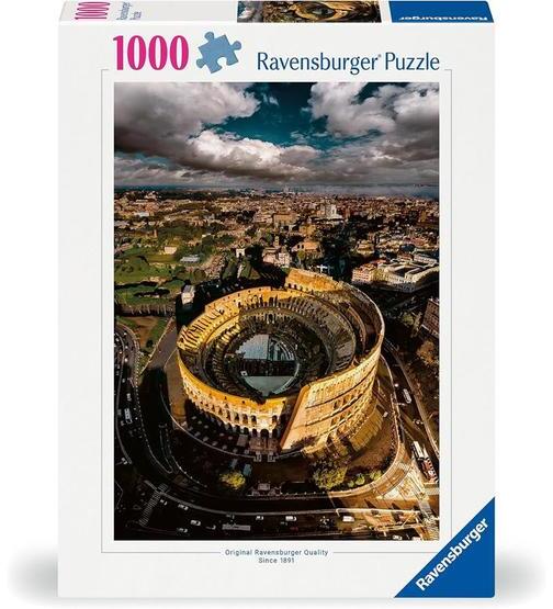 A Ravensburger  neve már hosszú évtizedek óta ismert az egész világon, mint a legkiválóbb minőségű puzzle játékok készítője. A kiváló termékminőség mellett a 2D-s és 3D-s puzzle kirakók rendkívül széles választékát nyújtja, mind a képi megoldások sokféleségében, mind pedig a puzzle részek darabszáma tekintetében. A  Ravensburger 1000 db-os puzzle - Kolosszeum - Róma  című képén a város leghíresebb nevezetessége, az ókori amfiteátrum látható. A 4 szintes, elliptikus alaprajzú építmény a legrégebbi épületek közé tartozik, a Kr. e. I. században kezdődött meg az építése.