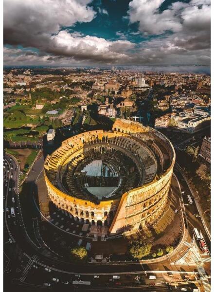 A Ravensburger  neve már hosszú évtizedek óta ismert az egész világon, mint a legkiválóbb minőségű puzzle játékok készítője. A kiváló termékminőség mellett a 2D-s és 3D-s puzzle kirakók rendkívül széles választékát nyújtja, mind a képi megoldások sokféleségében, mind pedig a puzzle részek darabszáma tekintetében. A  Ravensburger 1000 db-os puzzle - Kolosszeum - Róma  című képén a város leghíresebb nevezetessége, az ókori amfiteátrum látható. A 4 szintes, elliptikus alaprajzú építmény a legrégebbi épületek közé tartozik, a Kr. e. I. században kezdődött meg az építése.