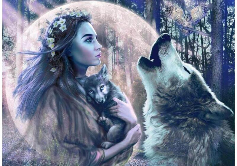 A Ravensburger 1000 db-os puzzle - Holdfényvarázs (12000621) című kirakó képén megelevenedő jelenet misztikus és varázslatos hangulatot áraszt a teliholddal és farkasokkal.