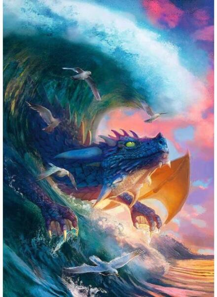 A sárkányok szerlmeseinek készült a Ravensburger 1000 db-os puzzle - Sárkányfutam (12000622) kirakó. A látványos, hangulatos képen egy hullámokon lovagló sárkány elevenedik meg.