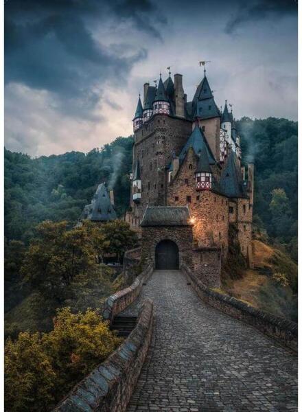 A Ravensburger 1000 db-os - Deutschland collectoins - Eltzi vár puzzle képén Németország egyik legszebb váraként számontartott Eltzi vár látható.