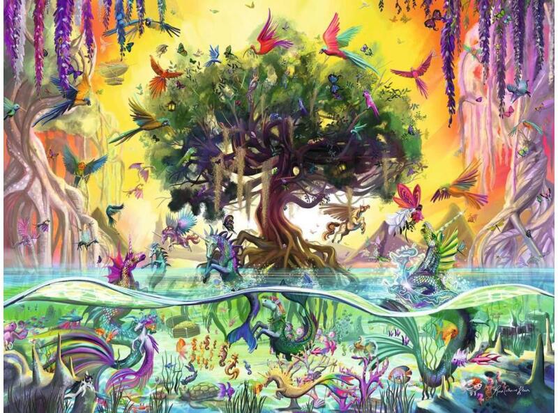 A Ravensburger 1500 db-os - Csodás unikornisok  című képen szépséges unikornisok láthatóak.