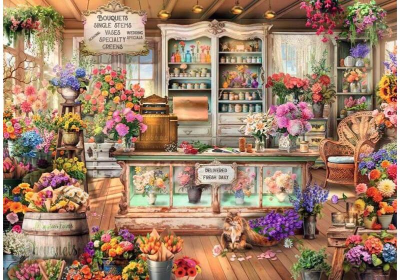 Ravensburger 12001262 - Virágbolt kirakó élettel teli részleteivel, a szebbnél szebb virágokkal, kaspókkal és vázákkal azonnal belopja magát a szívünkbe. A hangulatos virágüzletben egész évben találunk a kedvünkre való virágot és vélhetőleg egy-két jó szó is jut a kedves vásárlónak.