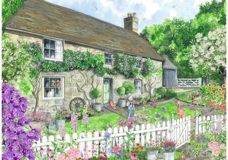 Gyönyörködj a virágokban és relaxálj a  Ravensburger 1000 db-os puzzle - Titkos kert (12001263) kirakóval! A képen egy hangulatos vidéki házikót láthatunk és egy meseszép kertet a lakóival.