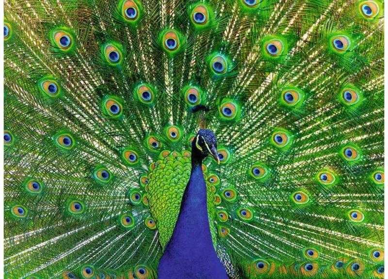 Kékek és zöldek minden mennyiségben! A Ravensburger 500 db-os puzzle - Páva (12001332) kirakó képén egy elegáns, színpompás tollazatú páva elevenedik meg.
