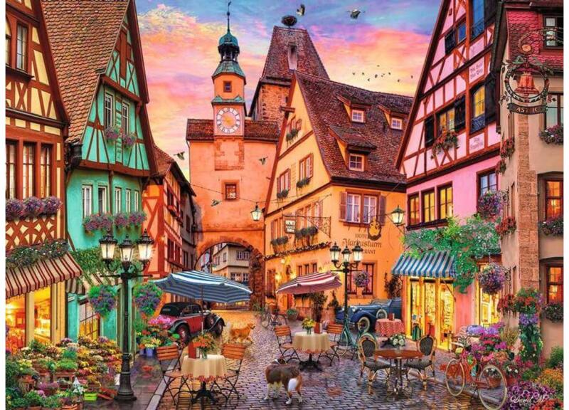 Romantikus hangulatú bajor utcácska, virágos erkélyekkel és festői házakkal. A Ravensburger 500 db-os puzzle - Bajor románc (12001381) kirakó igazi kikapcsolódást nyújt a szép épületek kedvelőinek. A kirakó kifejezetten a nagyszabású nemzetközi verseny, a World Jigsaw Puzzle Championship alkalmából készült.