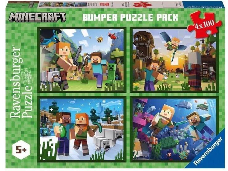 A Ravensburger  neve már hosszú évtizedek óta ismert az egész világon, mint a legkiválóbb minőségű puzzle játékok készítője. A kiváló termékminőség mellett a 2D-s és 3D-s puzzle kirakók rendkívül széles választékát nyújtja, mind a képi megoldások sokféleségében, mind pedig a puzzle részek darabszáma tekintetében. A Ravensburger 4 x 100 db-os puzzle - Minecraft  képein a híres videojáték szereplői jelennek meg.