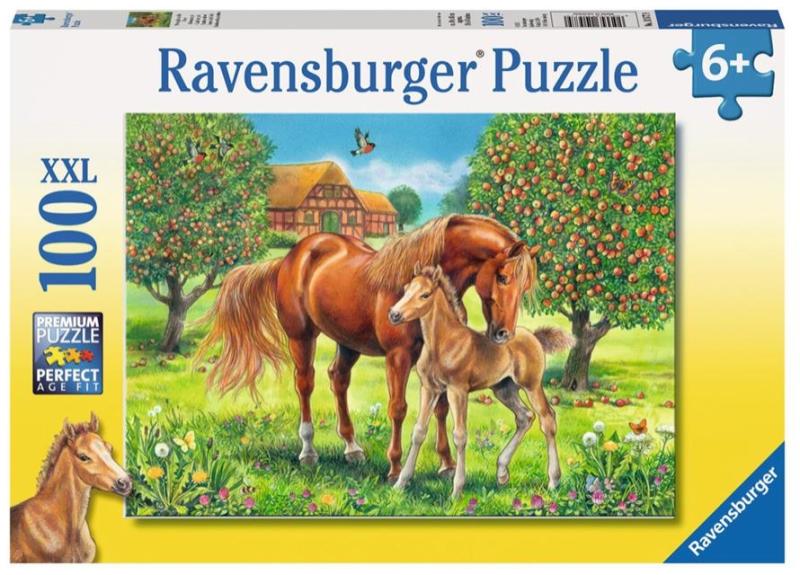 Egy kertben legel eacute, sző l oacute, eacute, s csik oacute, ja, puzzle-darabokb oacute, l! A Lovak a mezőn 100 darabos XXL puzzle egy gy uuml, m ouml, lcs ouml, skertben l eacute, vő teliv eacute, r lovat eacute, s p oacute, nij aacute, t mutatja neked, ha ouml, sszerakod a darabokat! A Ravensburger puzzle k ouml, nnyen illeszkedő elemekből aacute, ll, a kirak oacute, s nagyobb darabokb oacute, l k eacute, sz uuml, lt. A Lovak a mezőn 100 darabos XXL puzzle kirakott m eacute, retei: 49 x 36 cm.