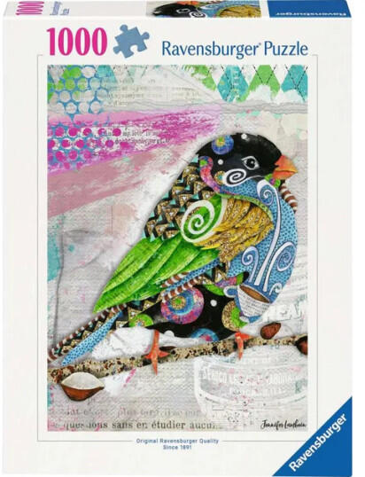 A Ravensburger kirakós játékok prémium minőségű szórakozást kínálnak: anyag, motívum és design tekintetében a legmagasabb színvonalnak felelnek meg – és hatalmas motívum-, formátum- és nehézségi szintválasztékot kínálnak. Mindenki megtalálja itt a tökéletes kirakós játékot: a kezdőtől a profikig. Ez az 1000 darabos, felnőtteknek szánt portré kirakó egy különböző elemekkel díszített madarat ábrázol. A Ravensburger kirakós játékok prémium minőségű szórakozást jelentenek. Kezdőknek, haladóknak és profiknak egyaránt – minden kirakós megtalálja a megfelelő darabszámot és motívumot. A kézzel készített lyukasztóeszközöknek, a kirakós játékok évtizedes tapasztalatának és a magas minőségi szabványoknak köszönhetően jellegzetes és egyedi kirakós darabok megdobogtatják a kirakósok szívét, és megtapasztalják, hogyan illik össze egy darab. A szenvedély itt él. Kezdőknek, akik kényelmesen érzik magukat kis számú darabbal, haladóknak, akik a közepes kihívást részesítik előnyben, és természetesen az abszolút profiknak, akik nem riadnak vissza a 40 320 darabtól. A Ravensburger kirakós játékok hatalmas motívumválasztékával semmi sem állhat egy felejthetetlen kirakós élmény útjába. A jellegzetes kirakós darabok egyediségét kézzel készített lyukasztóeszközök biztosítják, amelyeket a legnagyobb órásmesterségű pontossággal gyártanak Ravensburgban, Felső-Svábföldön. A kirakós játékok évtizedes tapasztalata, valamint az anyagok, motívumok és design magas minőségi színvonala megdobogtatja a kirakósok szívét, és megtapasztalják, hogyan illik össze egy darab. Ez a Ravensburger minőség iránti szenvedélye. 10 éves kortól ajánljuk.