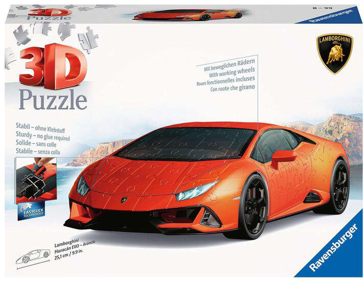 Paraméterek, termékleírás - Ravensburger Puzzle 3D 108 db - Lamborghini Huracan narancs (6040)