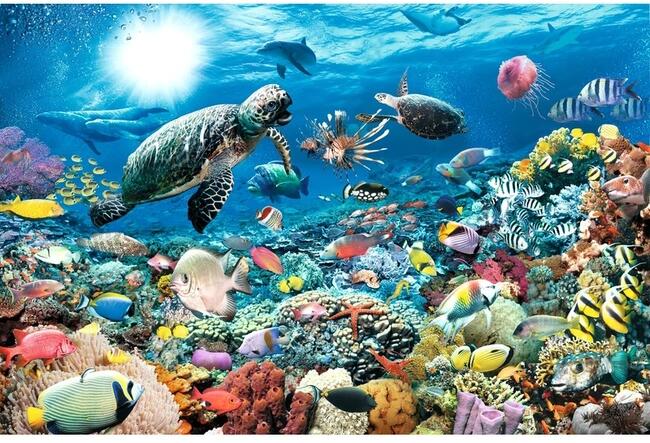 A Ravensburger 5000 db-os Tengeri élet puzzle remek kikapcsolódás és koncentráció fejlesztő elfoglaltság akár az egész család számára, vagy csak önmagunk szórakoztatására. Az összerakott puzzle mérete 153 cm x 101 cm. A kirakót 14 éves kortól ajánljuk.