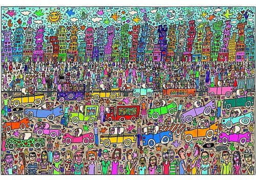 Ravensburger Rizzi város Puzzle James Rizzi egyik imsert festményét ábrázolja. Élénk színeivel az összerakást követően nagyszerű dekorációt jelenthet kartonlapra ragasztva. Az 5000 db-ból álló puzzle kirakása kihívást jelenthet a nagyobb gyerekeknek, de még a felnőttek számára is. Az igazi német minőség garantált!